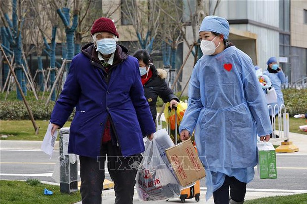 Bệnh nhân nhiễm COVID-19 xuất viện sau khi được chữa khỏi tại bệnh viện ở Vũ Hán, tỉnh Hồ Bắc, Trung Quốc, ngày 19/2/2020. Ảnh: THX/TTXVN